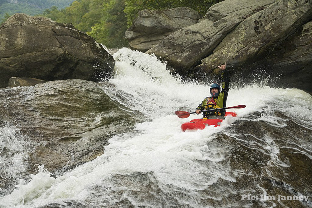 - Wheelie (IV+ to V-). This is a sweet drop. The river s-turns left, then right and then left. On the first turn try to stay high so that you land and can drive far right when the river goes right and boof the exit far right. The left is a bit of a pocket that gets people.