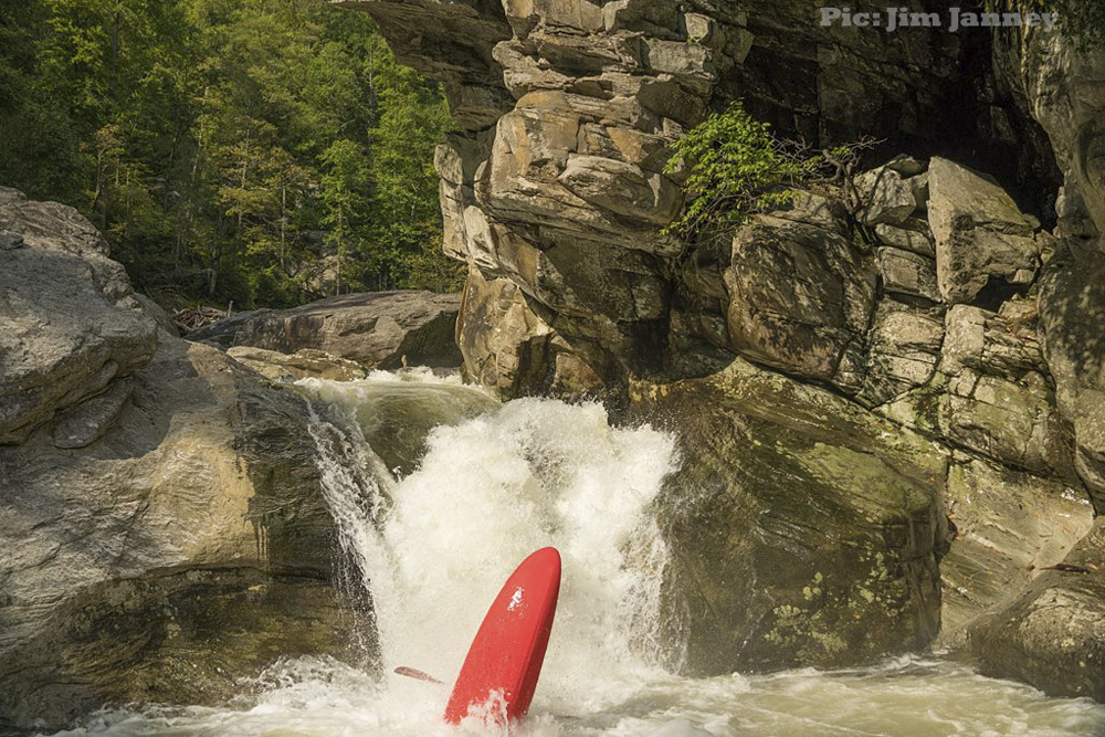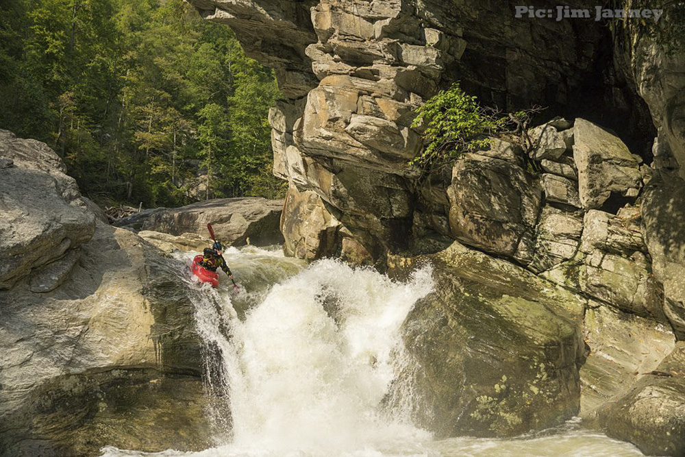 - Cave Falls (V). Such a good rapid. Scout from the right. If the flow is up you can run the entrance which is a slide on the far left. At low flow, you cant get far enough left to avoid the midstream rock and the potential for flushing into the right no-go channels. Once left, there is a small eddy that many use to seal launch into. From here, you drive off the left shoulder of a midstream boof, heading right and land on a slide. Those that get lucky land in a grove moving all the way to the right side of the river. Everyone else rides the slide down the left. Just don't end up far far left somehow. Apparently, there is also an eddy in a cave that you can use, which exits directly out onto the grove.