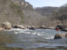 The run starts off with spectacular scenery in the heard of the Little River Canyon. As the river bends left you get the first two class III-ish rapids. And then the river bends south again and you are greeted with the biggest rapid of the run, Bottleneck. We boat scouted it, but I bet the scout is early on the right. Below, the river becomes a mostly flat water paddle with occasional small rapid all the way to take-out. Honestly, for us, after a week of class IV/V, the paddle out dragged on a bit too much for my taste. The scenery also went away as you got closer to the valley exit so we didn't have that to entertain ourselves.