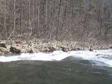 - Bottleneck (III to IV). The main rapid of the run is significantly harder than any other on the run. Run the entrance down the right. You can catch a slackwater eddy on the far left just above the crux though you honestly can't see much from there and that puts you directly above the hazards on the left shore just below. The line is to drive through the curler forming on the right shore and stay straight. There is a decent sized hole left of center at the bottom. If you keep it straight you will be all good.