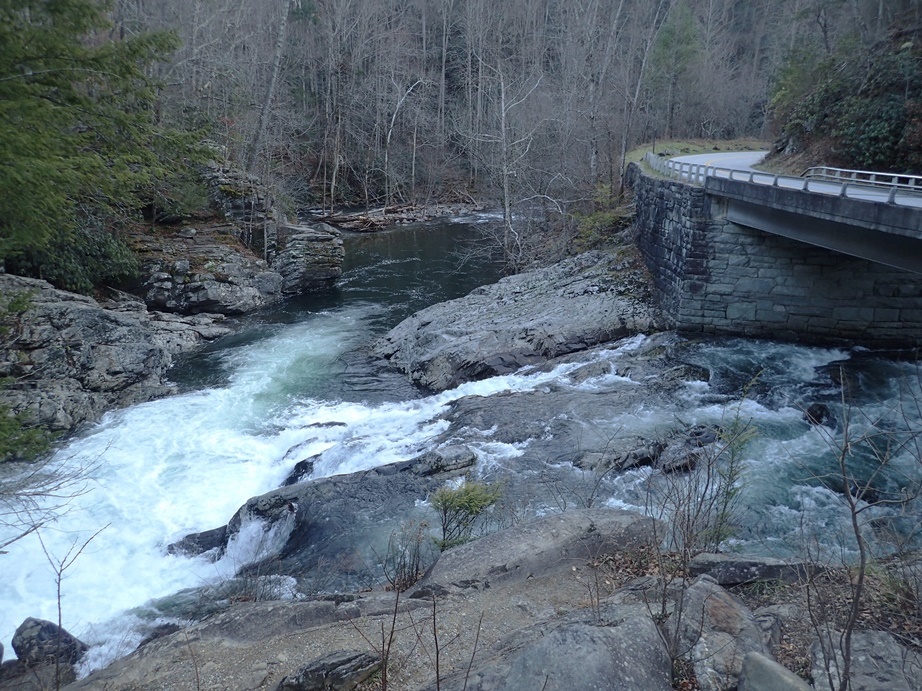 Take-out: From Maryville, follow US-321 East for 17.3 miles, eventually US-321 goes off to the left, but stay straight on the road which becomes TN-73 for another 1.5 miles. At the confluence, the road makes a Y, take a left onto Little River Gorge. Follow this for 2.8 miles to a turn-out on the river side of the road. I am sure on busy days you are forced to paddle all the way to the confluence due to parking area limitations at this turn-out.
