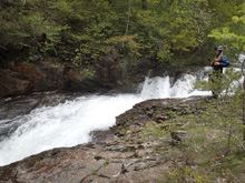 Small Falls (IV). A small ledge is best run right of center. It is worth looking at as there are some weird features on the lead in, though not hard. The falls itself is maybe 10 feet tall.