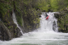 The upper take-out is 2.5 km up the road that climbs the river. It turns to dirt immediately so the driving is a little slow. Look for a dirt road which drops down to a bridge over the river. This is the same direction as put-in.