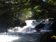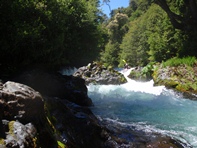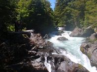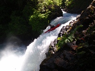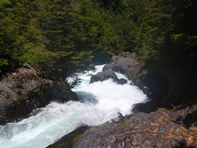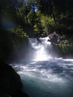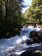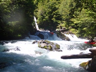 - Llancahue Falls (IV- to IV+). As far as waterfalls go, this one is really easy for its size. There is a autoboof left of center, and there is a pool downstream. There is also good locations to set safety from both above and below for those are who are nervous. Scout from the left eddy just at the top. Also, once down below, take the time to paddle behind the falls. It's pretty cool back there.