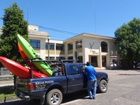 Take-out: Look at a map for help on this one as we made many turns. The idea is to get to the town of Conaripe on the far side of Lake Calafquen. Once you enter town, go left at the roundabout and follow signs for Termas Geometricas. Follow the dirt road, eventually you begin to follow the river. Not long after you get to the river, you will come to a small village of 5-6 structures. In another few hundred yards you will get to a clearing where there are grass slopes on the right and left. This is take-out, it should only be 100 feet down to the water on the right.