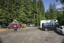 Take-out: Garmisch-Partenkirchen is a pretty major town along B23 and the Loisach River. On the West side of town, follow B23 out of town. Just on the edge of town you will pass Camping Erlebnis Zugspitze which is a busy campground... the one we did not stay at. In another 650 yards turn right on a little road that drops down to a parking area at the take-out. This is also where we, along with several other vans camped.