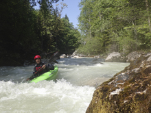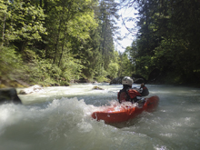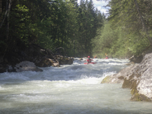 - Crux (III to III+). We entered a section where large rocks made for a blind rapid. Approach with caution to ensure no wood fills any of the channels. Just downstream is a ledge that we ran far left that had a moderately sticky hole at the base. Just keep it straight!