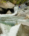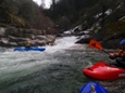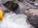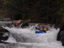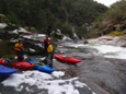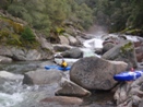Left or Right (IV+). With more water folks cut hard right, boof right at the entrance. Stephen however found we lacked enough water and pitoned followed by pinning. The rest of us banged out way down the right through some mank and into a boxed in hole.