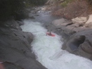 Undercut (IV to IV+). In the boulder bars comes a rapid that pushes you towards the left wall that contains many sieves. Just downstream is a good undercut that a few people have gone under and popped up well downstream. After this rapid, the run is basically done so enjoy the white iceberg looking rocks that appear and enjoy the memories of the day.