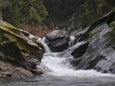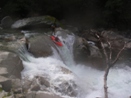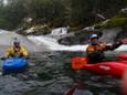 Boof (V-). We boofed the first four foot ledge on the left and eddied out left to boat scout the lip of the next drop. The fun 10 foot boof had water pushing lateral across the lip, but boofing the center was straight forward and great fun. There were a few small holes just downstream followed by an eddy on the right. The water keeps moving past it into the next rapid if you have problems.