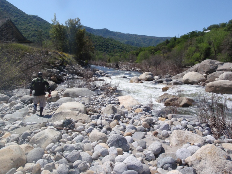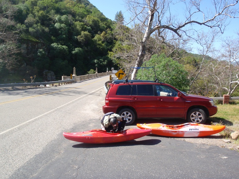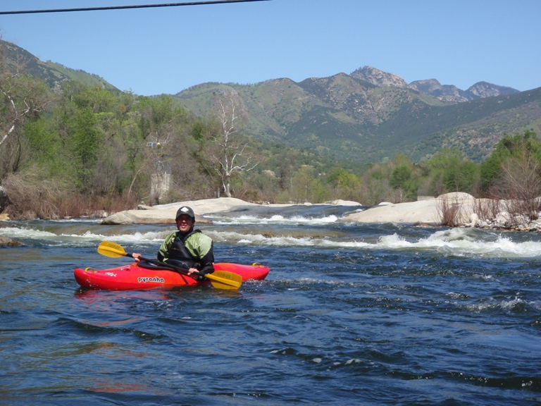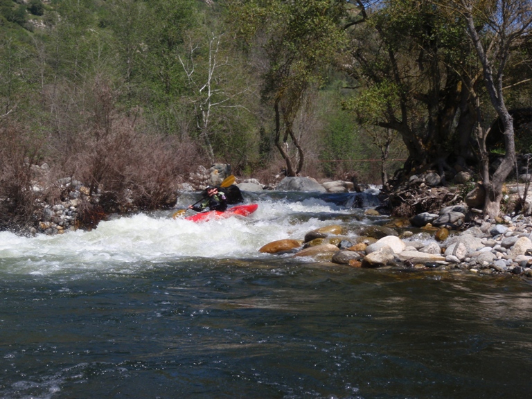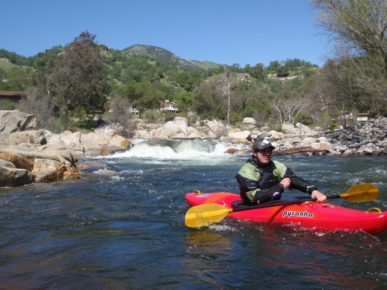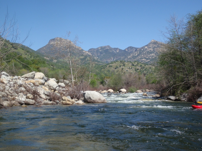 Take-out: From Visalia drive 28 miles to Three Rivers. On the West side of town look for North Fork Drive. Find a place to park that doesn't have no parking signs. We used a closed shop, then got off the river on the opposite side of the river and carried the gear over the bridge to the car. Maybe experienced folks know of a better way.