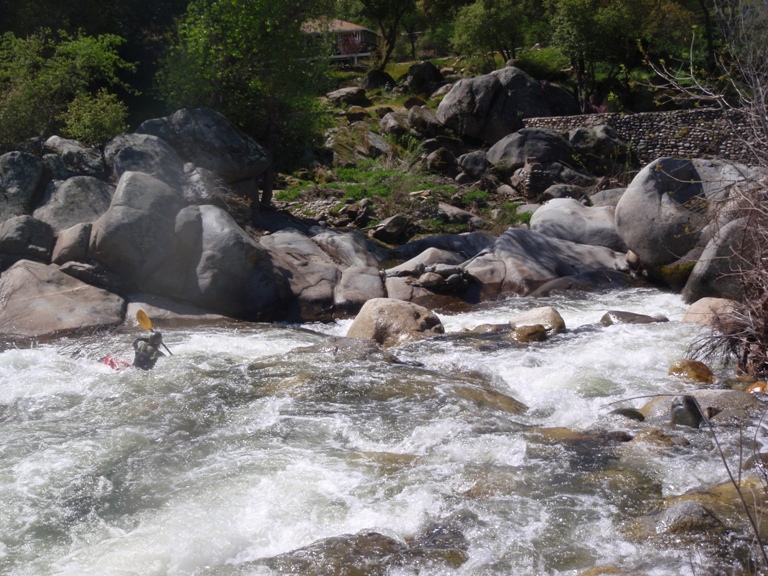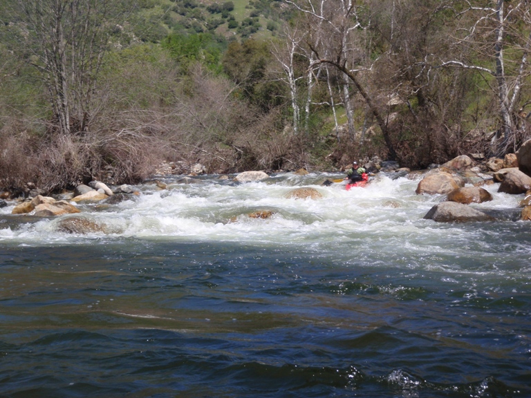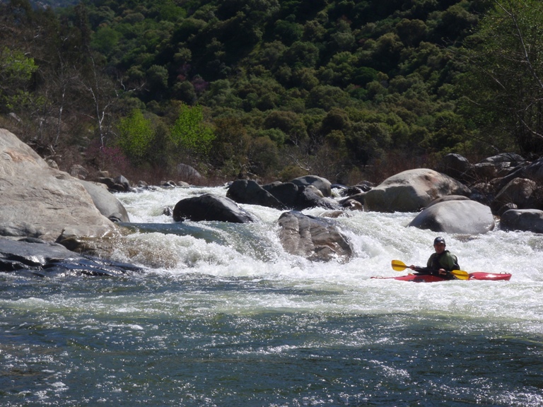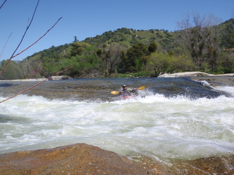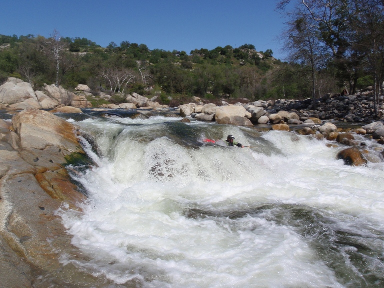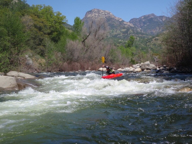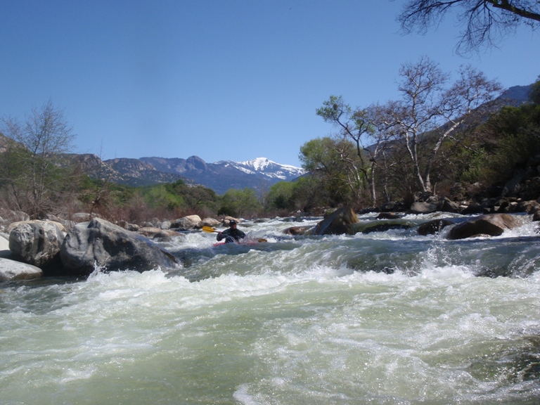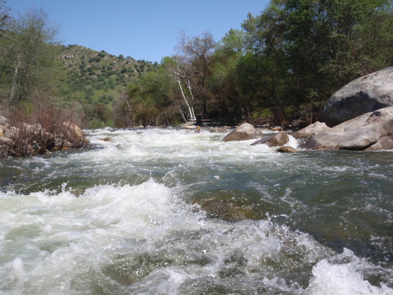 One last thing, this river has turned into a 2-3 mile short section breakdown much like the Kern. Every place that there is a bridge or access point, the run names change. The top half mile mentioned in the paragraph above is call the "Park Boundary." Gateway runs down the Dinely Bridge 3 miles below Pumpkin Hollow, and Dinely runs down to the North Fork of the Kaweah. Stanley Holbek on the other hand only have 3 runs. In their Hospital Rock write-up they include part of what is now called Ash Mountain. In their Gateway, the include the tail end of Ash Mountain, and all of Park Boundary, Gateway, and Dinley. This write-up includes Gateway and Dinely, it also only has the big rapids. There are many many class III rapids that all blended together in my mind.