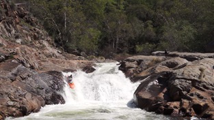 Table Rock (V). Some class III boogie leads to a sharp left hand turn, drive right to left to get some of the table rock, boofing out over the hole. The right side drops you into a large pocket hole. Luckily Darin and I had some miscommunication as he ended up in the pocket and my avid kayak porn watching led me to think he told me it was table rock. I bet he was scared in the pocket thinking of me barreling down upon him, luckily I went left and boof clear of him. Great drop. And man is it bigger than any pictures let on.