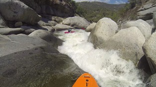 As for the run, we had lowerish water, about 775 at Three Rivers when we took off. I thought this was a pretty good flow for a first time down with my skill level. It was no pushy, it could have been more padded out, but overall it was slower than it would be with more water which is nice when the drops seem to just keep coming. For reference, I thought this run was a little harder than Golden Gate, though I also didn't run several of the big rapids on Golden Gate. It was also however a completely different style, it felt more like a big creek than a river. The rapids were steep and boulder filled affairs or perfect bedrock drops. Both of which brought the consequences straight to your face, whether it was the plethora of sieves to avoid (see the entry of 420 gorge) or the holes leaving you completely alone just out of reach of help (see middle of 420 gorge), the hazards were more apparent than Golden Gate though in total perhaps the rapids were milder. Whichever is harder, Hospital Rock was a stressful run for someone like me.