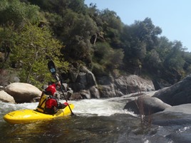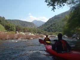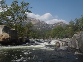 Put-in: Enter the park on Highway 198 and go less than a mile to the turnout on the right at the "Sequoia National Park" sign. There is a trial down to the water here.