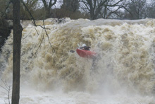 - Middle Fork Falls (V). Most will seal launch in immediately downstream of the bridge. The line is to drive hard left to right and boof the far right side of the ledge with right momentum. The hazard is that there is a rock shelf extending 80% of the landing from the left. So you want to clear that to the right.