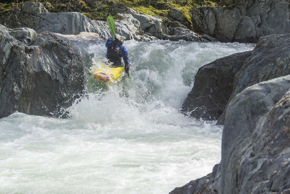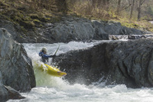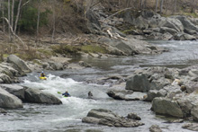 Small Ledge (II+). Immediately below the falls the river enters a small gorge which leads to this river wide ledge that is small and easy to run anywhere.