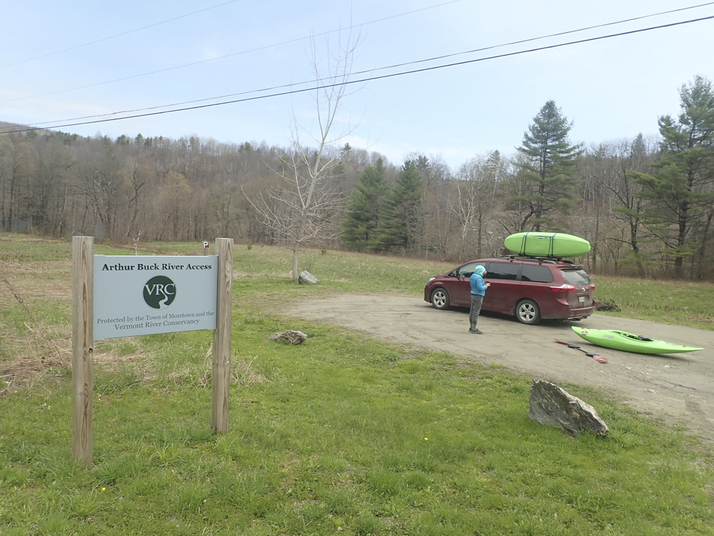 Put-in: Head back east on US-2 for 1.5 miles. Turn eight onto VT-100B and follow for 2.0 miles. Just before the bridge over the river, turn left onto the dirt (good) Moretown Common Rd. In 0.3 miles there is a wide spot with enough room for two or three cars to park and a trail down to the river just below the dam.