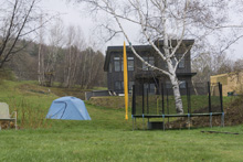 - Maze (II+). At the next nice house is a fun rapid that had a bunch of spots for stern squirts as the water moved between and around large mounds of bedrock. We started left and finished right.