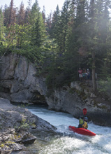 Take-out: From the town of Jasper, head north on AB-16 for about 4 kms. Cross the river onto Malingne Lake Rd and follow this for 3.1 km, turning left towards the Maligne Canyon Trailhead. Follow this for 800 m to the trailhead. This is the 5th bridge (counting down from the top, but that is also the naming scheme on google)