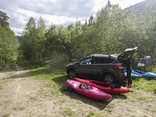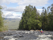 Put-in: Go back out and towards Atra. Turn right just before crossing the Mår river. This road turns to dirt and forks several times, stay left at the forks. Follow it until you can't anymore which is near an old cabin and a large split in the river.