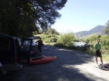 Take-out: From Murchison, take Highway 6 West out of town. Just after the Matakitaki turn left onto the dirt road, Matakitaki West Bank Rd. Head up this for 4.2 km. The road will go away from the road and get relatively close again. There is a wide spot for parking on the right just across from a small dirt road with a gate on the left that drops down to the water. Park on the main road.