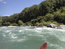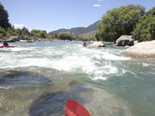 - First Rapid (III to IV). The first rapid and the last are the biggest on the run. This one was great for breaking apart with fun eddies. I can really see why this short section is a great place for instruction. Lines for all skill levels. You can run down the middle if you want. But we worked from one side to the other and back again a few times.