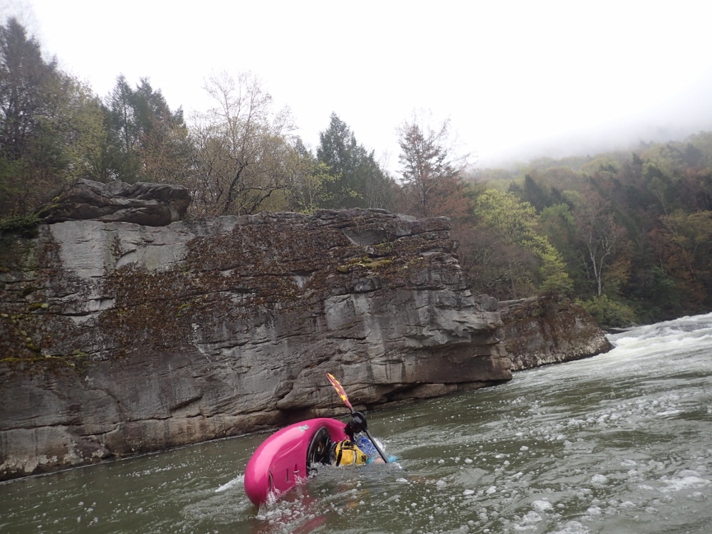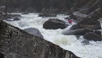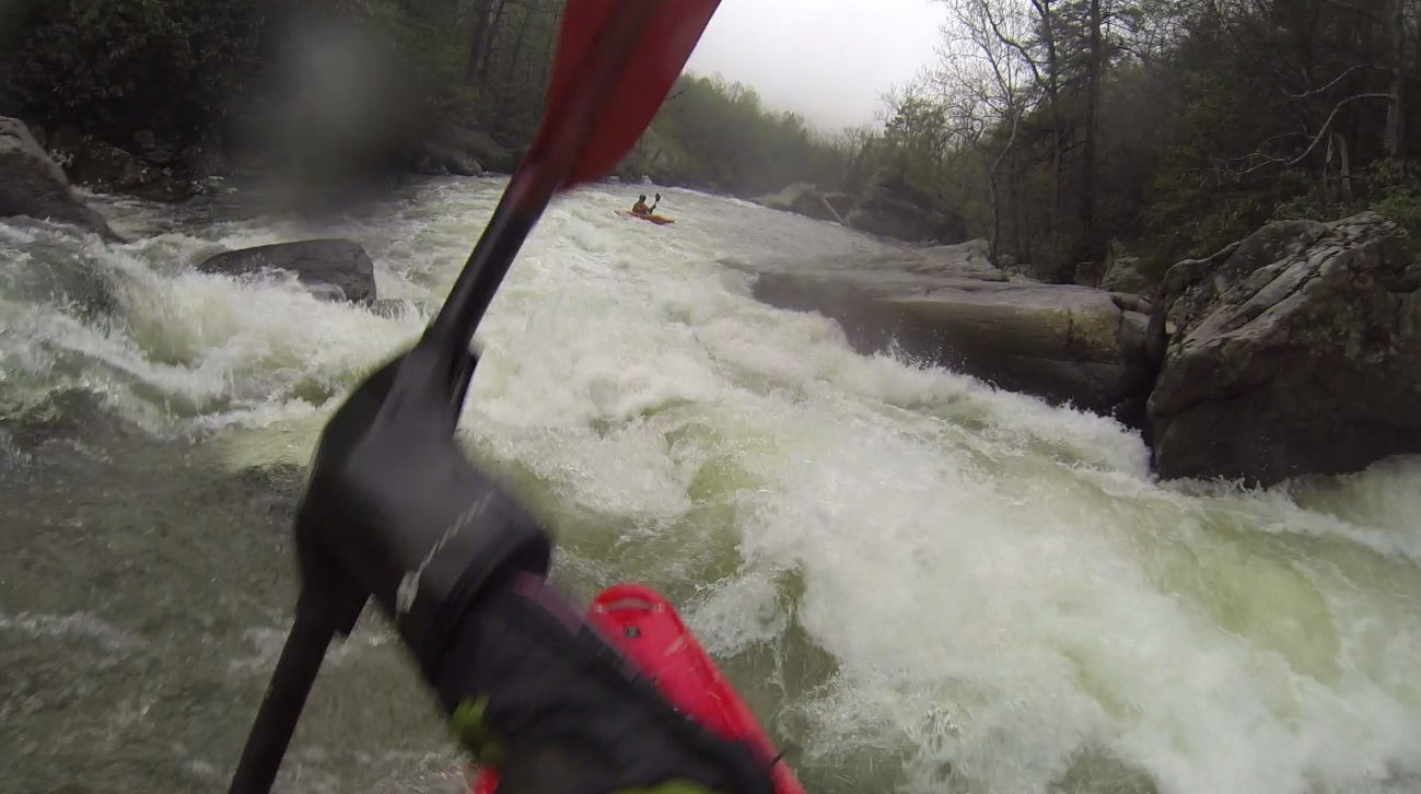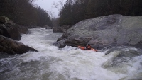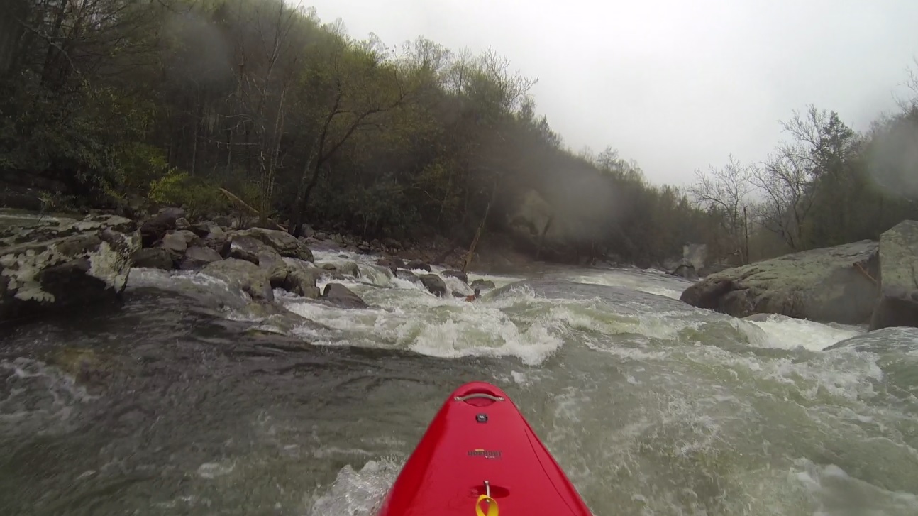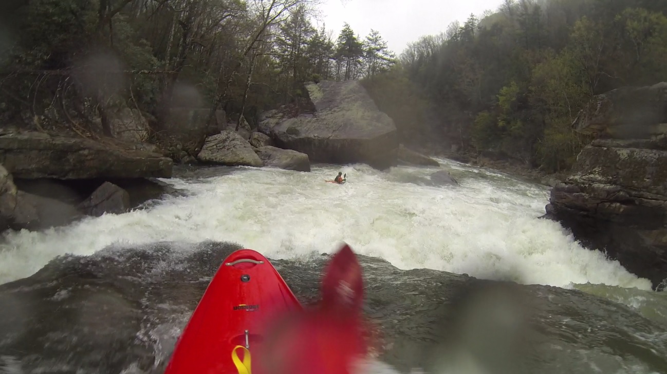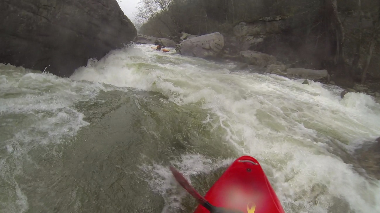 We had ~800 or so on the gauge, it was in the process of going up due to the rain from all evening. This gauge though is well upstream and usually you add 200-250 cfs to get a general estimate of what the flow will be. So we had ~1,000 to 1,100 cfs. Lots of people consider 1,200 cfs their limit, some up to 1,500... though others still are more conservative and call 800. From California, this river at 1,050 (we will call it that), felt like a perfect flow. The sieves were filled in (for the most part), the rapids were full of water and slightly pushy, some holes were big, but the boofs over them were straight forward. I would compare this to Cherry Creek on the Tuolumne at a similar flow I think, though perhaps this is a quarter to a half step easier. Though at the same time, WAY more dangerous! This river has claimed 3 lives that I know of, and I am sure the count won't stop there. Several sections of rapids are linked up, a swim in one rapid could easily spell disaster if your group allows you to swim into the next rapid. So, stay cautious and be ready to rescue!