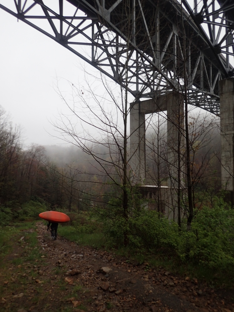 Take-out: From Summersville, WV, head South on US-19. You will pass WV-129 (which goes to the Upper Gauley put-in), look for the first right which comes after 3.6 miles and turn onto Mt Lookout Rd. We stayed left at a fork early on to stay on the road for a total of 2.2 miles. At the end of the road there is a muddy turnout on the left, just across from the last house's drive way. This is where the trail comes up. From the river, after Double Undercut you will go through one rapid, around an island, and then one more small rapid before you will see a house size rock with a small rock balanced on top on the right shore, the trail starts just behind that rock. The trail climbs in 3 segments. The first is up a nice enough trail. You will then head left and climb a washout section. This then hits the old road where the gradient levels off and you head right, up to your car. It takes ~30 minutes to do the hike. It is steep.