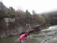 - Heavy Water (IV to IV+). This rapid appears significant and is a little intimidating. Large boulders constrict the rapid and make it ling from the very top. As you boogie in the river narrows into a hallway that has a pillowing rock at the end, go left of it or cut immediately behind it. Just downstream is a really sweet boof off the left shore.