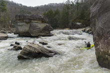 | Flows: | 450 to 1,500 cfs. The gauge is upstream, so you add ~20-25% for accrual. Visit the American Whitewater flow page | |