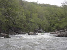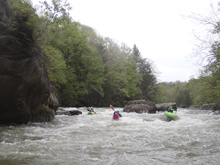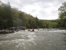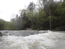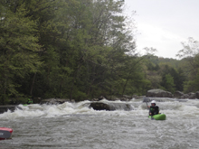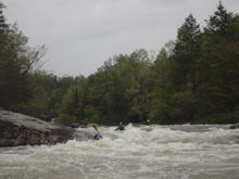 - First Rapid (III-). The first rapid was a nice splashy affair. We ran down the left and then either finished left or right. The right had some nice fluffy stuff to boof over.