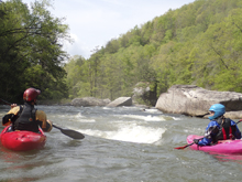 The only downside to this run is the 1.7 mile paddle in to the rapids. Apparently you can put in lower if you want... but we just used the easiest access. The paddle in only took maybe 20 minutes and allowed for a nice warm up and time to chat with friends. Oh, I guess there is a second downside, when you get to take-out, you have to hike up to the road above. This is maybe 300 vertical feet which takes 10 minutes or so to walk up. Not the end of the world, but not as nice as having a car mere feet from the take-out.