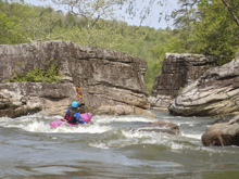 - Rock with a Tree (III-). When you see a really cool rock standing in the middle of the river with a tree on it, go down the main left channel. If you have over 1,200 cfs the right side also goes, but it is rock and just not great. The left side is straight forward boogie. This rapid continues for a good ways, not big at anytime, but some fun moves to make, fun eddies to catch, all sorts of different lines etc. This basically continues for the next 0.5 miles to where it begins to wind down.