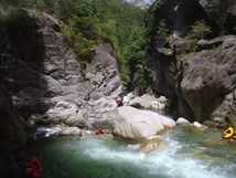 The run should feel a little low at the start. If the run feels high in the first few drops, the crux in the walled out gorge will become difficult. It is portable but not super easy. There would be one hairy ferry to escape the bottom of the gorged in section. At our flow the river felt good in the two put in drops, but then quickly felt too low. Then when we got to the main gorge, felt perhaps just a smidge low... but certainly in the "ok" range. The scenery in that gorge is super cool, a shorter and tougher version of the Cannobino. But both usually need peak snow melt or some recent rain to run.