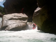 Note 2016: Please see the comment at the bottom. Apparently in 2015 a sieve opened up in "Put-in Drop #2" and it has now seen a fatality. Recommend putting in below the rapid and double bridges. Article about the accident (German)