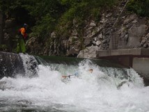 - A small weir that was runnable in the middle between two bad looking fans of water. This also marks the true entry into Switzerland. Below you quickly hit the lake and a short paddle out.