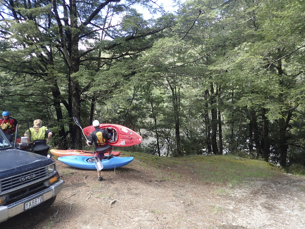 Take-out: From Murchison, head North-East out of town on State Highway 6. Just after the bridge over the Buller turn left onto Matiri Valley Road. Follow this down the Buller and then up the Matiri for 8.9 km. Park on the side of the dirt road near the opening in the bush to access the river. If you get to the road bridge over the river (on a T'd road) you went a km too far.