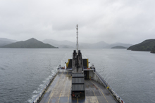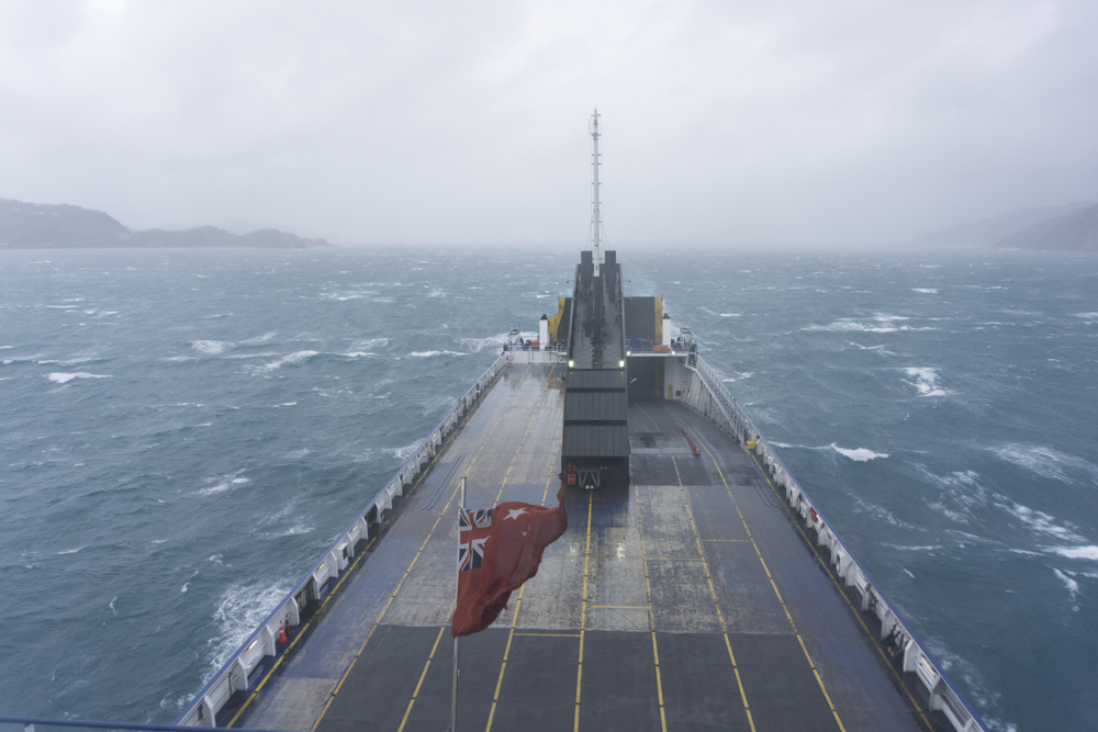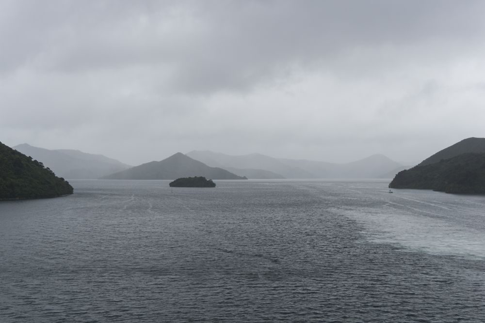 I awoke in the morning and hoped the ferry. As a side note, if you plan to take a ferry, especially around the holidays, book early. As in at least a month or two early as the ferries fill up. That morning the storm was still raging. I read that as long as it isn't northerly wind the ferries run well into the 100 km/h wind range, so I breathed a sigh of relief. On the ship, once in the open ocean of Cook's Strait I went to go to the bathroom, and found every stall occupied with sea sick folks as the ship was rocking quite a bit. Personally I spent most of the crossing up on the top deck with a warm coat under my rain coat, enjoying the sensation of being at sea.