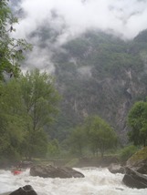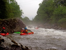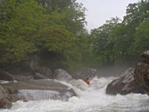 - Rock in the Landing (IV-). A fun rapid some of ran down the left, but we had to scramble to boof away from a rock in the landing of the final ledge. The cleaner line is down the right the whole way. This rapid comes just after a right bend. From there to take out it was mellower class III read and run.