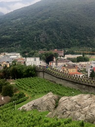 However, during the drive we saw what looked to be a nice little town called Bellinzona which also had a very nice looking Gelatoria (ince cream store). That even we decided to go back and get ice cream and dinner. The ice cream was amazing. The dinner options were actually sparse. Most that we came across were closed... it was Wednesday, who knows why. Others were very expensive (as is everything in Switzerland). We ended up eating meh pizza that really didn't quench any of our appetites. While we were wondering though we came upon a castle in town that as it turns out was free to walk around in. Such a cool castle that as it turns out is 2,000 years old (or at least parts are) and has been conquered by seemingly every group that has stepped foot in Europe. Really worth the half hour if you have some time to kill off of the river.