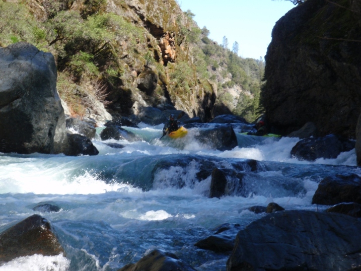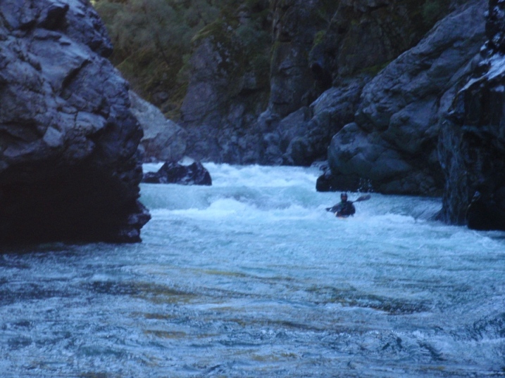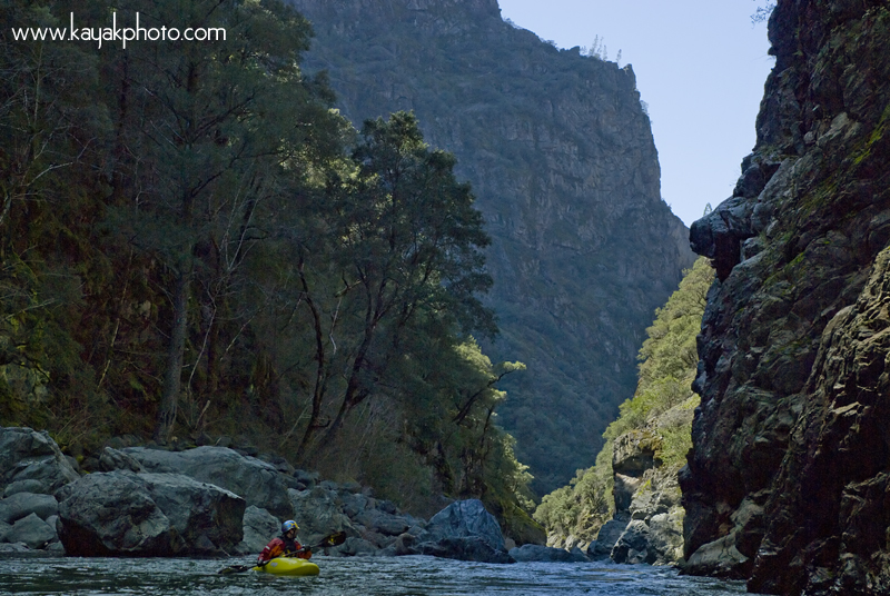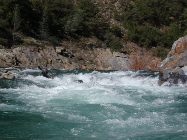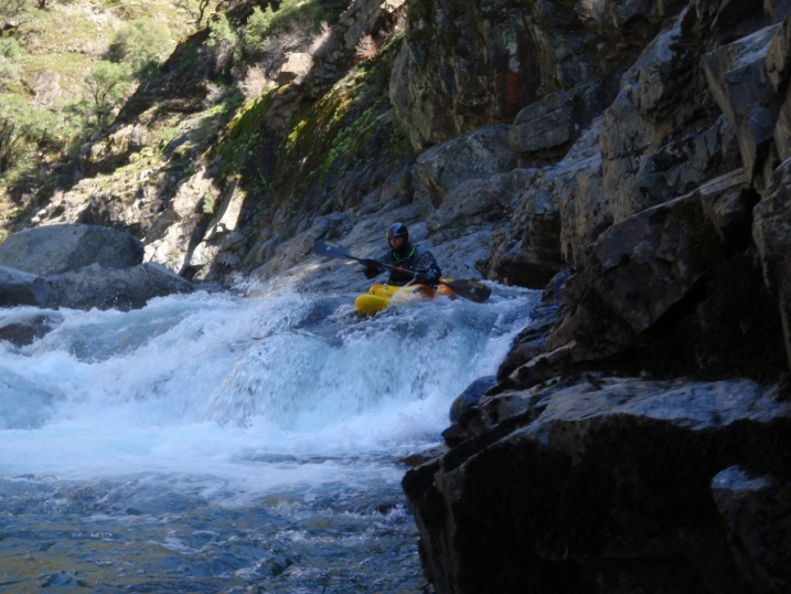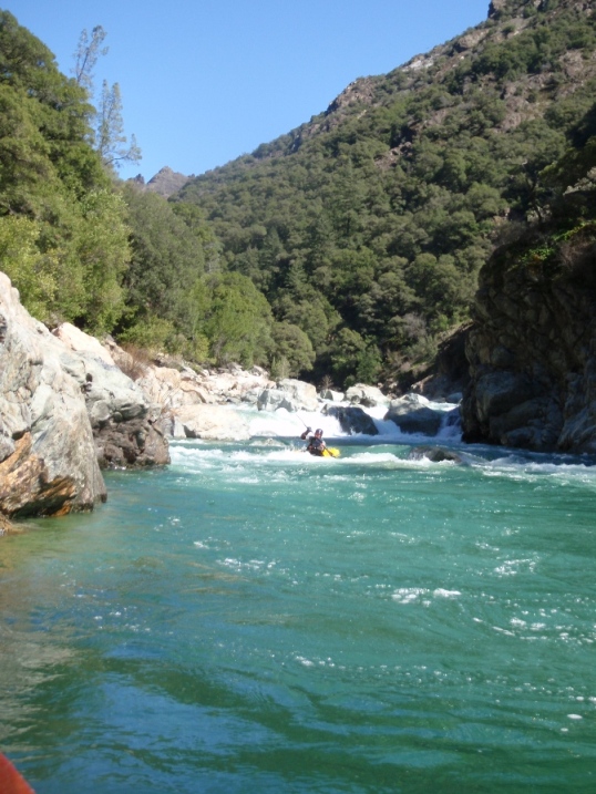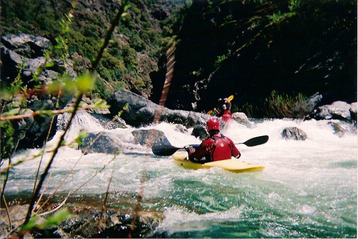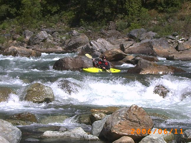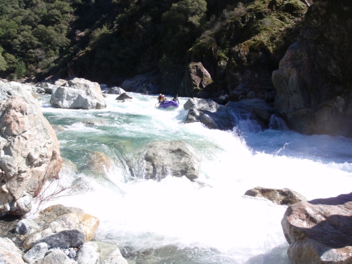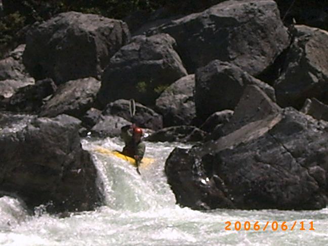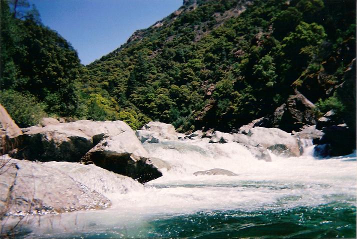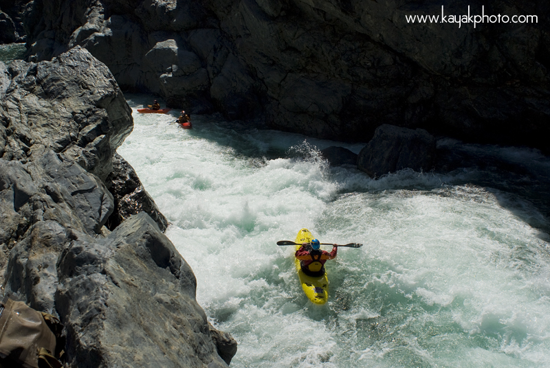 The first time I went to run this run, I was still a class IV boater, and this was the furthest that I had pushed myself to date. Because of this I don't think I ever looked up and around to see some of the most amazing mountain views that can be seen in the Sierras. The other stupid thing about that day on the river is that my memory of it was quite skewed from reality. I remember the three big rapids and a few of the smaller rapids, but do not remember there being as many class IV rapids in between and for such a distance. After my second run I have decided that this run is a classic as many have always thought. The run does however have a two-mile hike in, although all downhill, it is still a pain. Furthermore, the last five miles or so is down easy class II and occasionally class III which after the long day up to, gets a little boring and tedious. This would be a horrendous run if you either: don't have someone familiar with the run, or aren't a capable boat scouter. There are many rapids which are technical (20+ class IVs or so). Many of the rapids are long affairs that have no individually hard moves but a mistake in the top would have reverberations which might not be pleasant. There are many sections hundred yards long or longer, which require eddy hoping and picking a new line once you can see the next section. With this said, the final class V rapid has a choked off entrance, so be wary of bombing into every drop as it may just be Dominator.