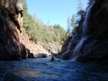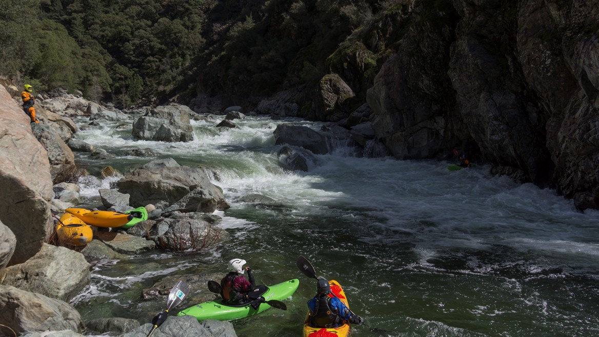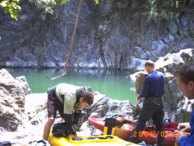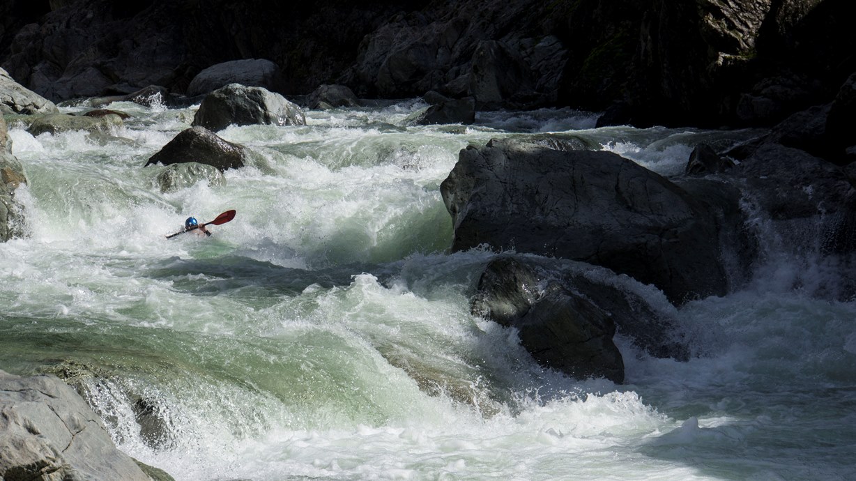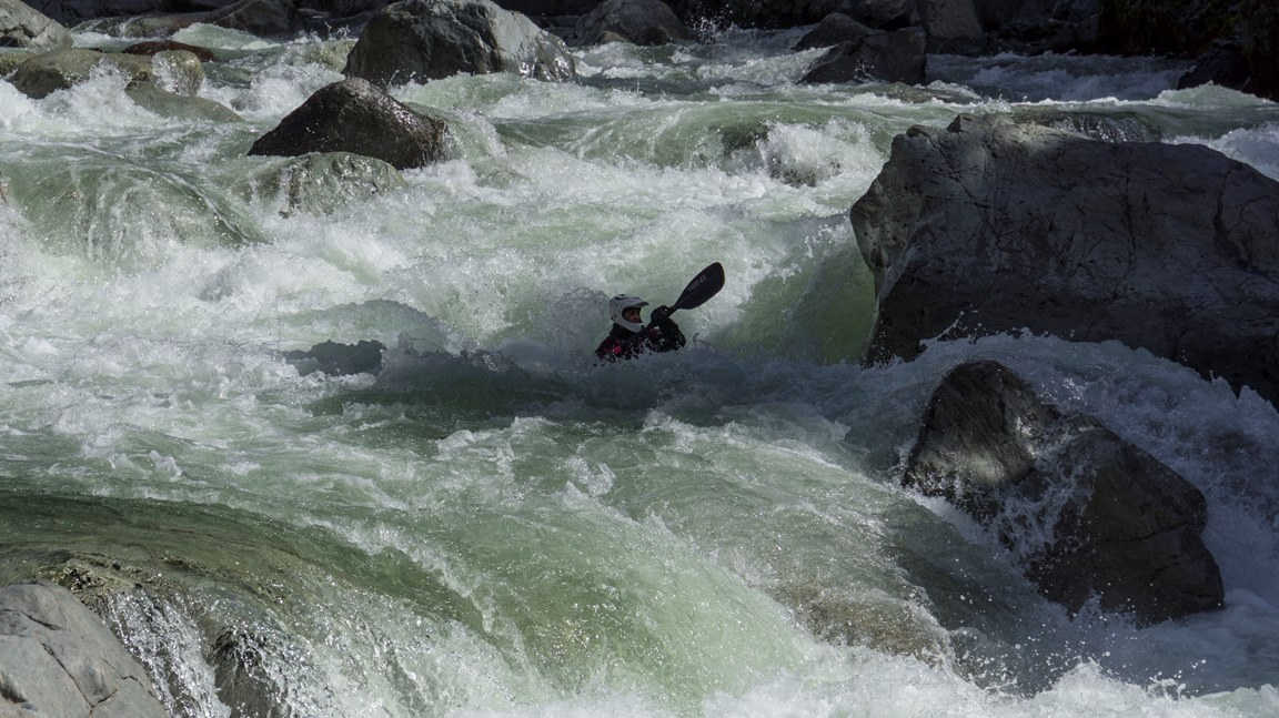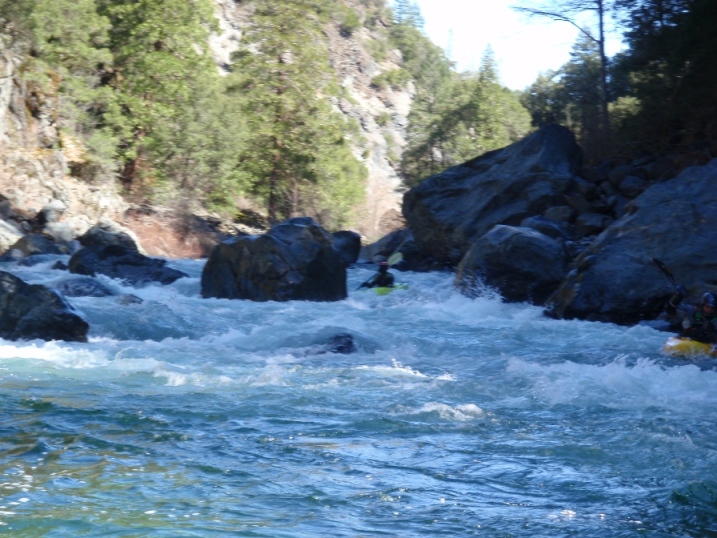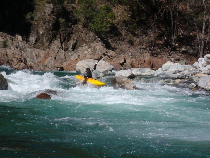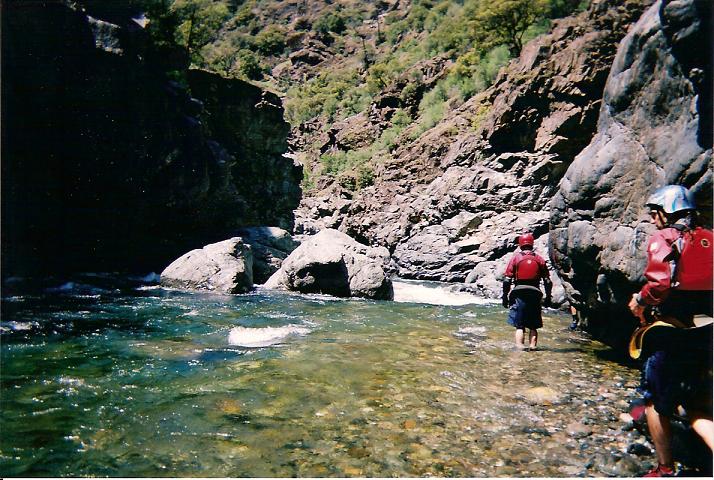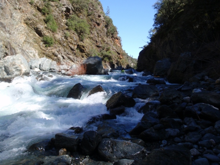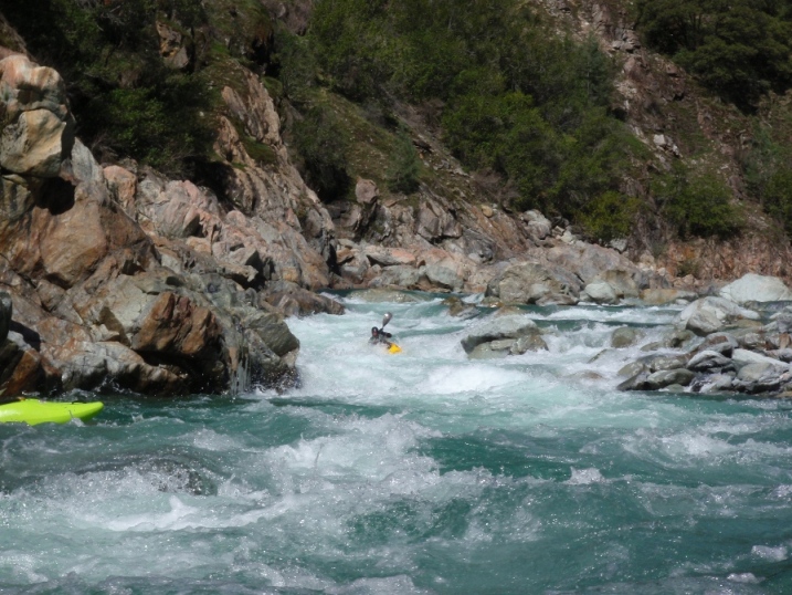 The first time I went to run this run, I was still a class IV boater, and this was the furthest that I had pushed myself to date. Because of this I don't think I ever looked up and around to see some of the most amazing mountain views that can be seen in the Sierras. The other stupid thing about that day on the river is that my memory of it was quite skewed from reality. I remember the three big rapids and a few of the smaller rapids, but do not remember there being as many class IV rapids in between and for such a distance. After my second run I have decided that this run is a classic as many have always thought. The run does however have a two-mile hike in, although all downhill, it is still a pain. Furthermore, the last five miles or so is down easy class II and occasionally class III which after the long day up to, gets a little boring and tedious. This would be a horrendous run if you either: don't have someone familiar with the run, or aren't a capable boat scouter. There are many rapids which are technical (20+ class IVs or so). Many of the rapids are long affairs that have no individually hard moves but a mistake in the top would have reverberations which might not be pleasant. There are many sections hundred yards long or longer, which require eddy hoping and picking a new line once you can see the next section. With this said, the final class V rapid has a choked off entrance, so be wary of bombing into every drop as it may just be Dominator.