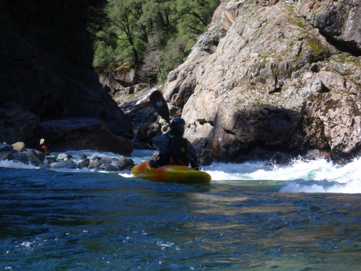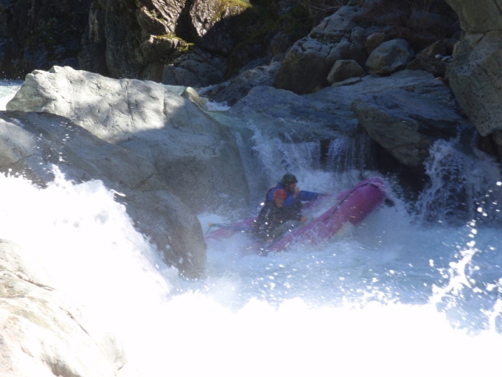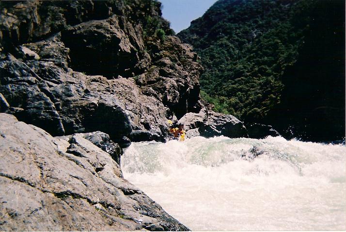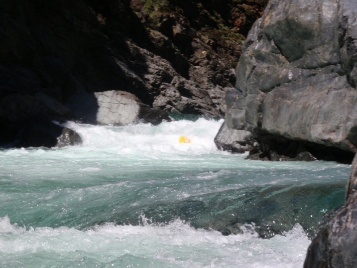 Grater (IV+). Another boulder choked rapid (notice the trend yet?) best run on the left. We ran into the left, then middle, then ended on the left again. The far right (top down) is really chunky) As long as you enter on the left you should be fine, although being upside down on this would be very painful.