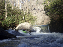 - Submarine (IV+). Pool to pool it is one move, but it is a bit messed up. Scout on the left. The slopping drop lands in a hole that will be hard to keep your nose up on. The current entering from the right will push you left into the undercut/cave combo. We didn't like it. So instead we ran a small channel in the middle going from the right channel back to the left just downstream of the hole. It worked great.