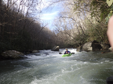 Fun boogie fills the first half mile below the alternate put-in. When the river bends hard right and goes into the shade you know you are getting close!