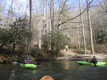 Take-out: From Henderson, head West on Us-64 for 49.4 miles. Just after the town of Rossman look for the outdoor retailer on your right as you get to NC-215. Turn right and go up 215 (Parkway Rd) for 1.7 miles. Just after the flat rocks that overhang the road (Alligator Rock) look for parking on the left near the beach. If you want to hike-out, go 2.4 miles farther up the road and look for the turnout on the left just prior to the electrical lines going overhead