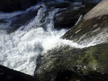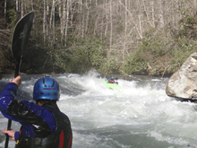 Vortex (III+ to IV-). A fun drop just below Clog. We started right and worked far left through a hole. The river then jogs back right and slops back left through a soft hole. You can drive right across the slop to avoid the hole or just straighten out and punch it!