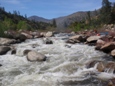 - Lower Salmon Falls (IV to V). We took the easiest line. Just left of the large midstream boulder lies a small ramp into a small hole. From there it was clear sailing. Some folks go around the other side of the rock and splat the boulder just downstream. Other folks still go farther left and make a move in front of a large sieve. Not as hard as the Upper Falls but full of hazards none the less.