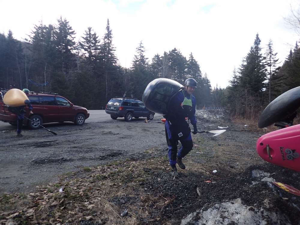 The plan was to meet at 4:30-4:45. Since we were driving from New Hampshire we ended up getting there early, around 4:00. As 4:30 came and went, nobody. As 4:45 came and went, nobody. "We didn't have much cell service, I wonder if the plan changed...?" Finally one car showed up... also wondering where everyone else was. Finally a little after 5:00 folks started showing up, flows were verified to be low but ok, and we set shuttle.